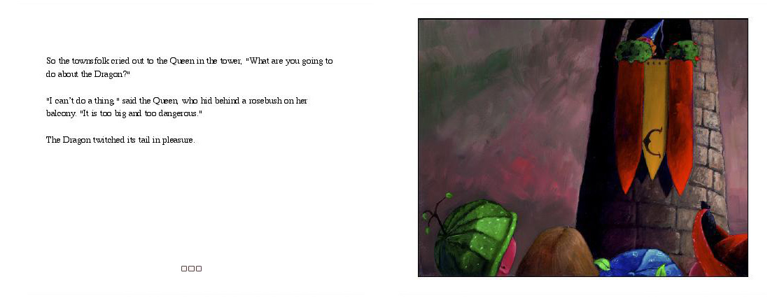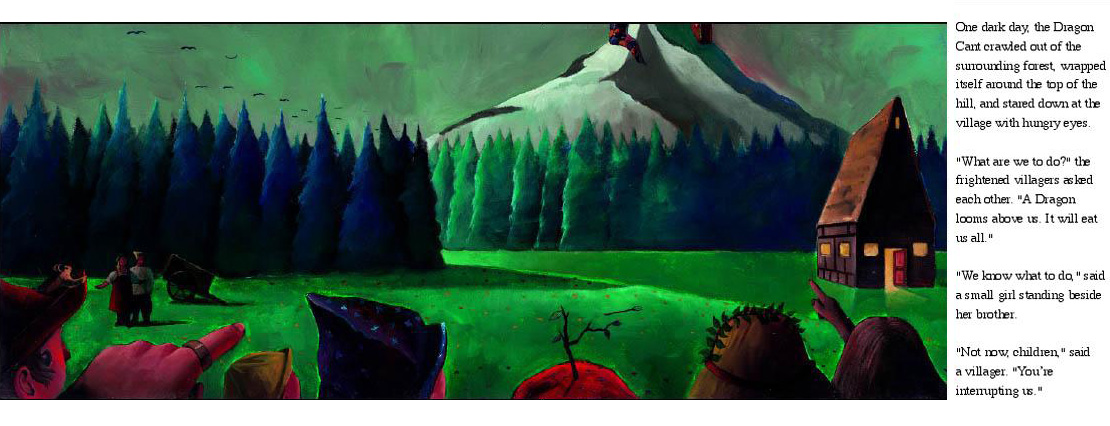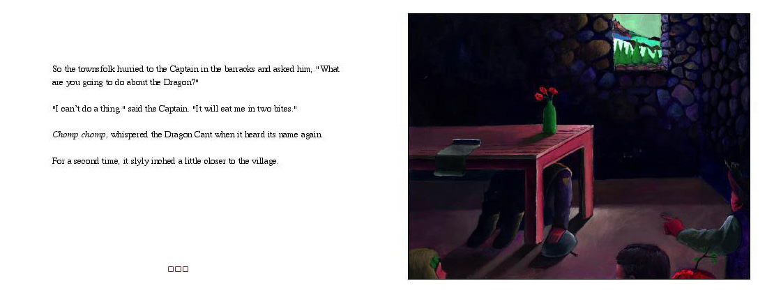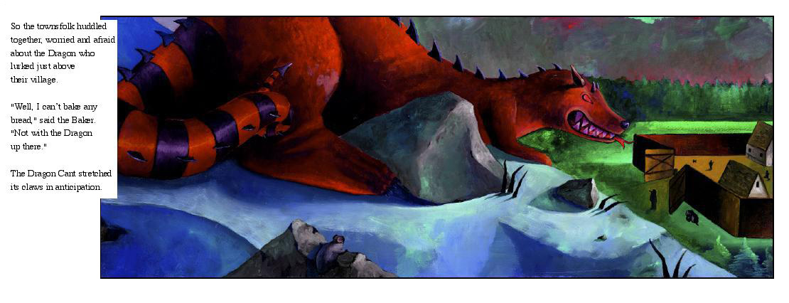 One dark day, the Dragon Cant crawled out of the surrounding forest, wrapped itself around the top of the hill, and stared down at the village with hungry eyes.